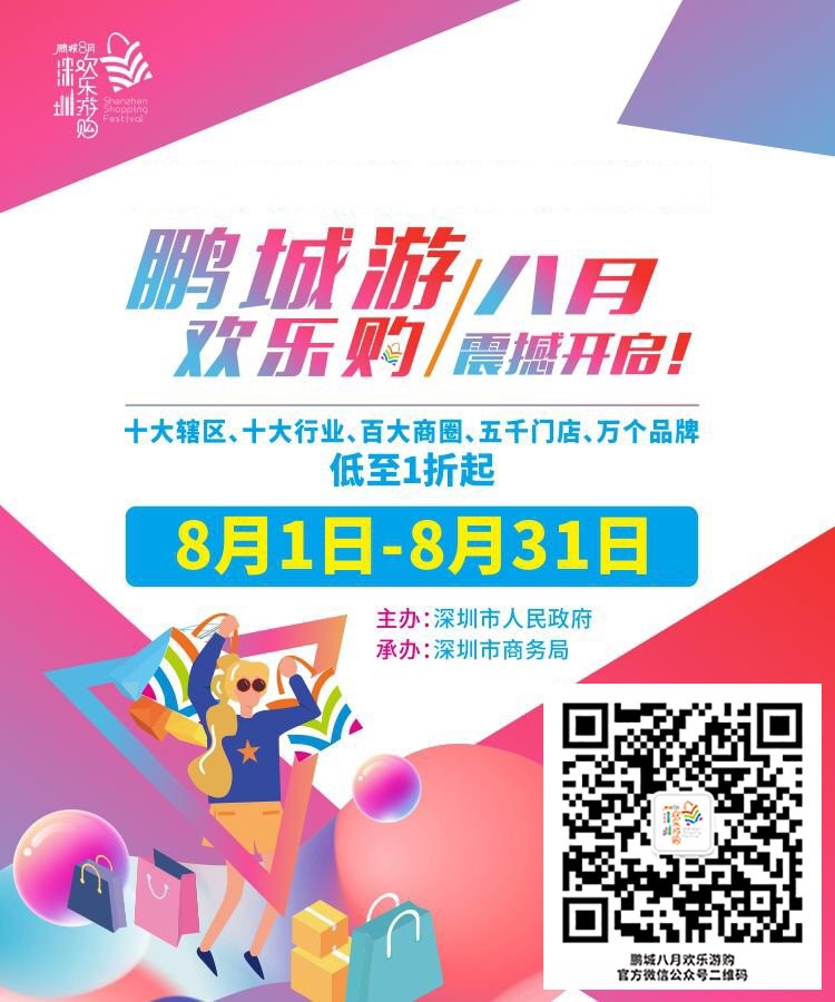8月1日在福田區大中華國際交易廣場大堂舉辦開幕式,啟動2019“鵬城八月歡樂游購”活動